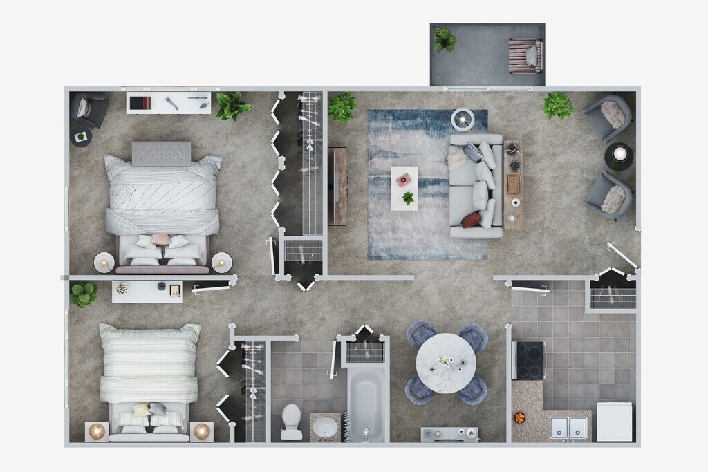 Modelo de apartamento: A2Desde $1,7701 Dormitorio, 1 Baño, 675 sq ftDisponible Ahora![]()