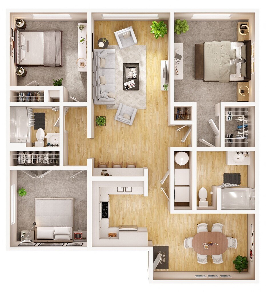 2 Dormitorios, 2 Baños, 1035 pies²Disponible AhoraGalería del Modelo