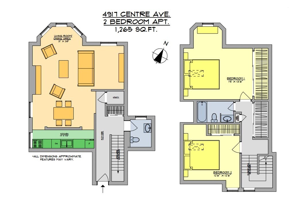 2 Dormitorios, 1.5 Baños, 1265 pies²Galería del Modelo