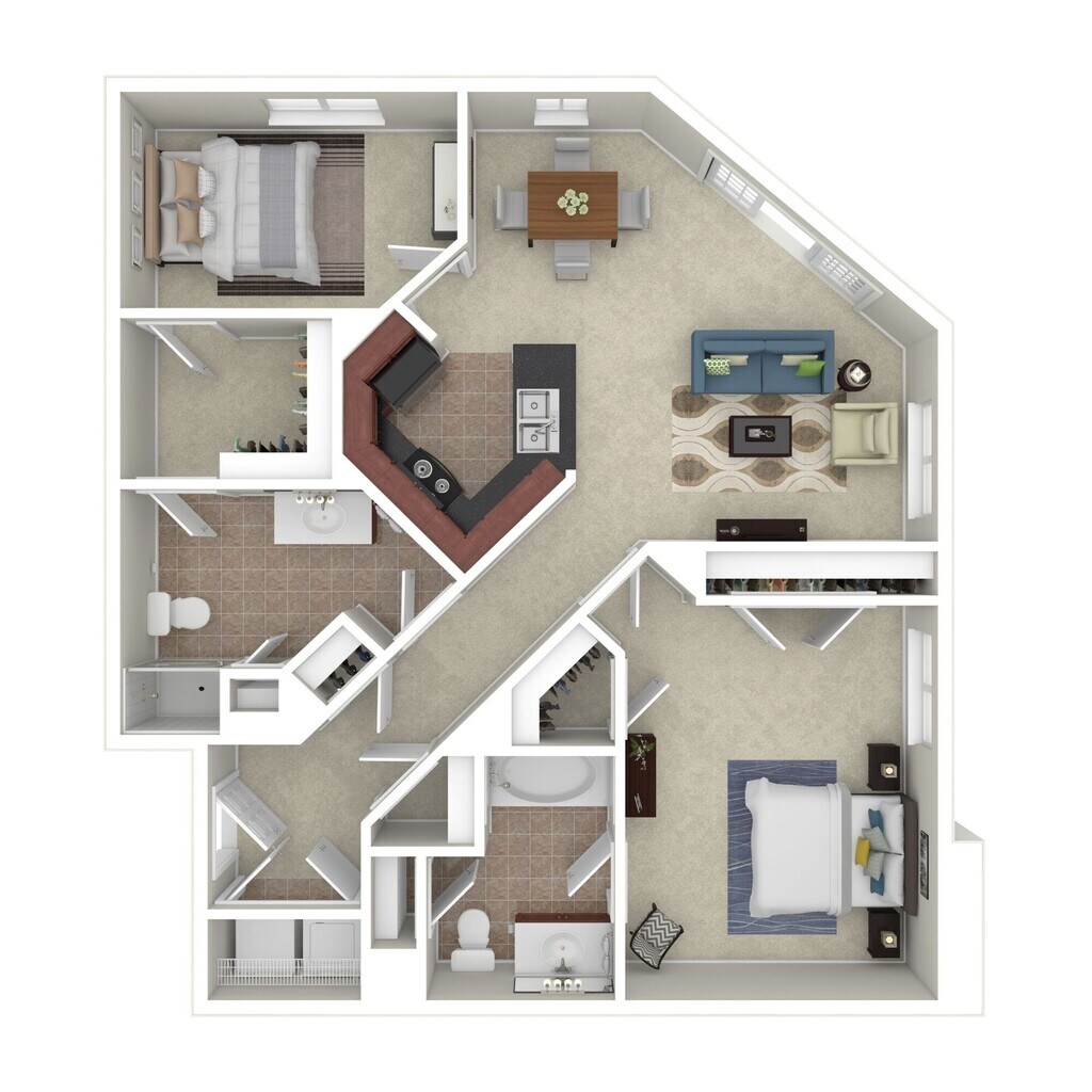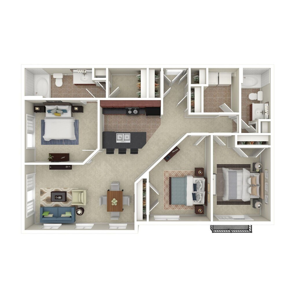 Modelo de apartamento: HydrangeaDesde $1,2851 Dormitorio, 1 Baño, 700 sq ftDisponible Ahora![]()