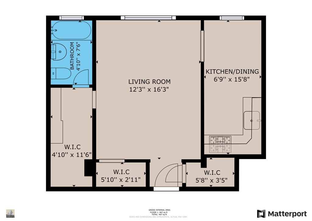 Estudio, 1 Baño, 450 pies²Disponible Apr 1Galería del Modelo