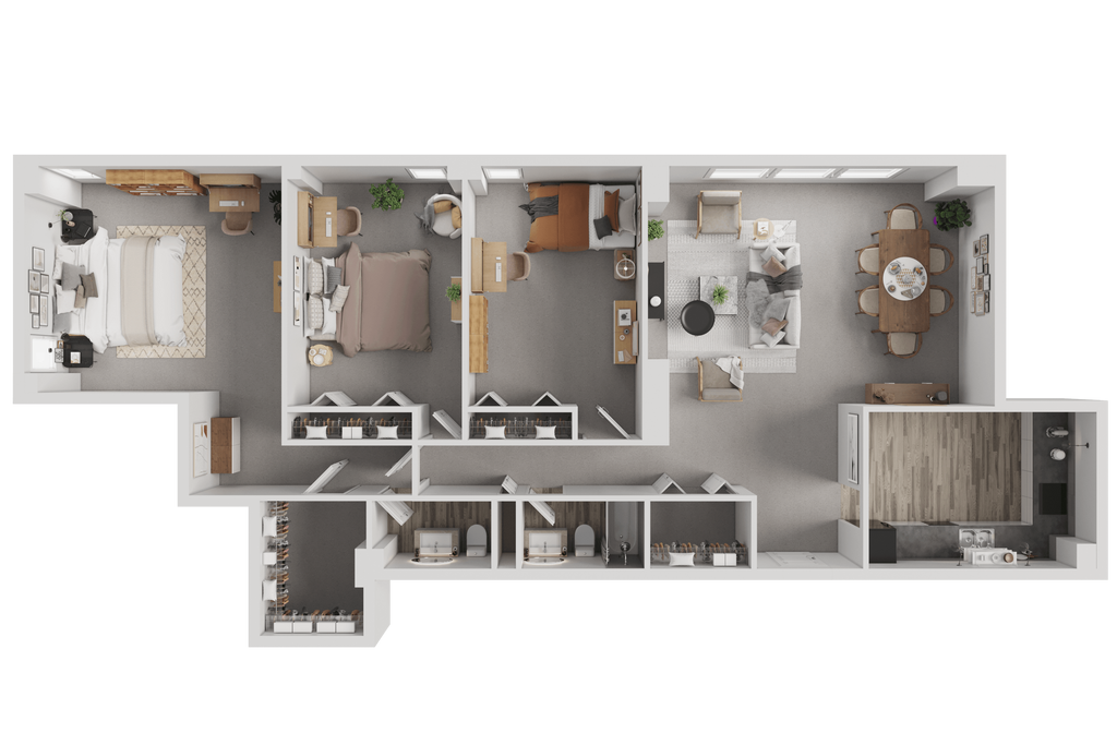 Modelo de apartamento: 3 BEDROOM$1,9753 Dormitorios, 1.5 Baños, 1296 sq ftDisponible Ahora![]()