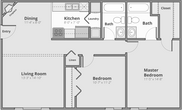 Modelo de apartamento: Mays$1,1111 Dormitorio, 1 Baño, 620 sq ftNo DisponibleMays - Plano 1 Aaron