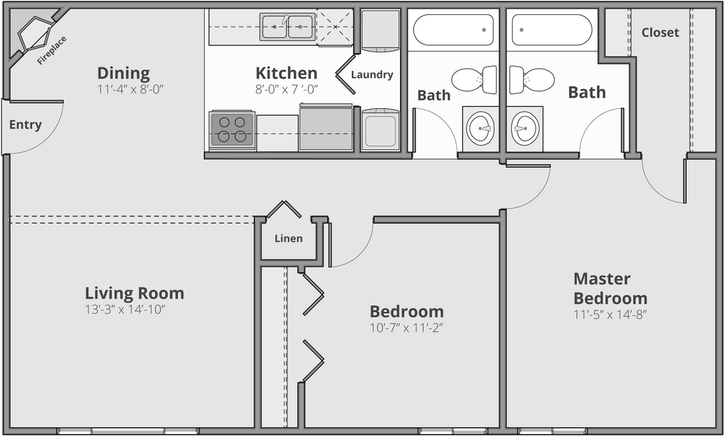 2 Dormitorios, 2 Baños, 940 pies²Galería del Modelo