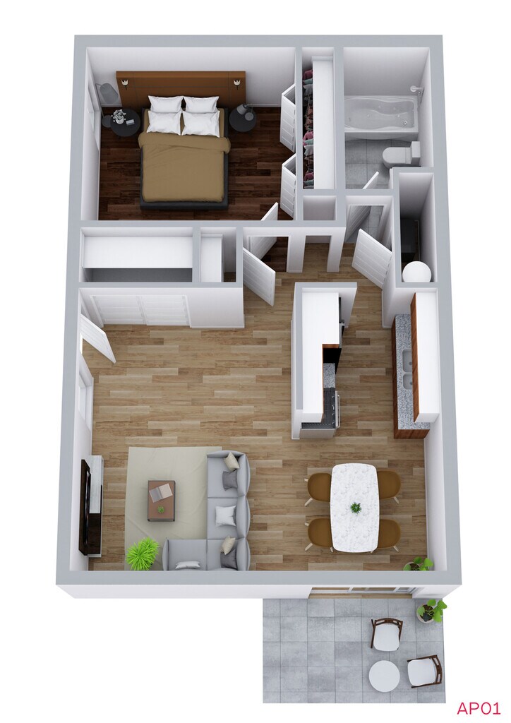 1 Dormitorio, 1 Baño, 630 pies²Disponible AhoraGalería del Modelo