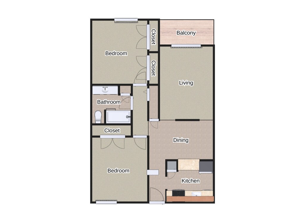 2 Dormitorios, 1 Baño, 993 pies²Galería del Modelo