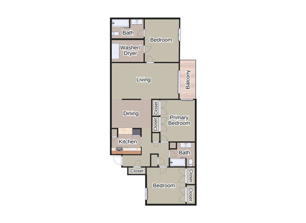 2 Dormitorios, 2 Baños, 1156 pies²Precio Mensual TotalDisponible AhoraGalería del Modelo