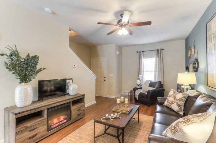 March 19, 2021Absolutely Perfect! We love it here. Everything from the management staff to the landscaping is on point. Our townhome is beautiful and very spacious, not to mention the amenities the property has. They are always doing things for the community such as coffee & donuts, trunk or treat for the kids and our favorite, the food trucks that come out quite often. I can't think of anything negative about living here at all!Reseña de Apartments.com