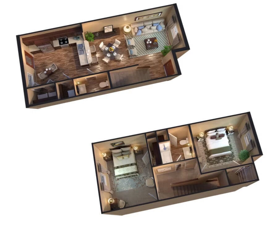 2 Dormitorios, 2.5 Baños, 1379 pies²El más grandeEsta opción tiene las unidades más grandes para este modeloGalería del Modelo
