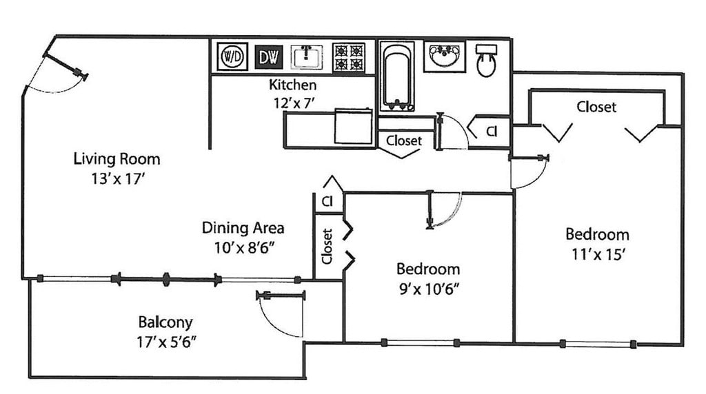 Modelo de apartamento: AshleyDesde $9751 Dormitorio, 1 Baño, 500 sq ftDisponible Ahora![]()