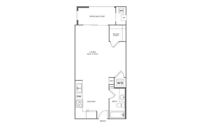 Modelo de apartamento: Studio-SLlame para PreciosEstudio, 1 Baño, 524 sq ftNo DisponibleStudio-S - Plano 1 1 Dormitorio