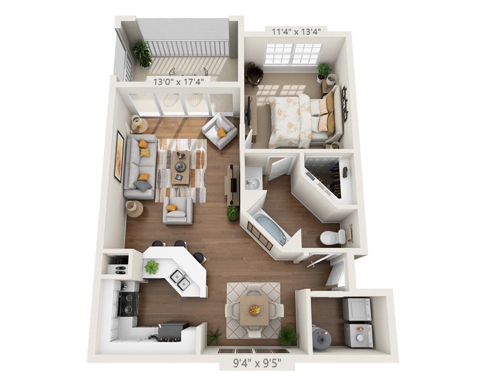 1 Dormitorio, 1 Baño, 775 pies²Precio Mensual TotalDisponible AhoraGalería del Modelo