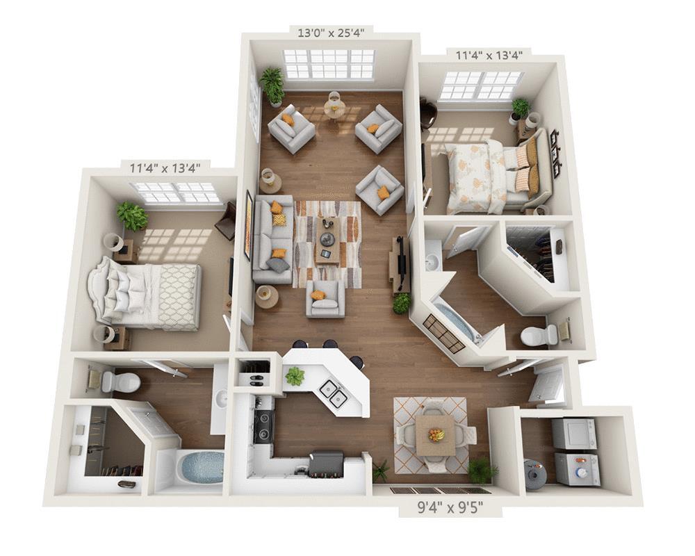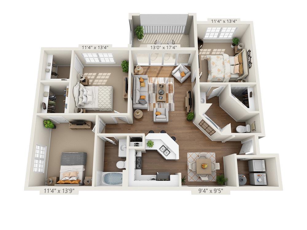 Ashton at Waterford Lakes ofrece apartamentos de 1 a 3 Dormitorios desde $1,392 con 775–1,327 pies cuadrados. Aquí está el precio actual y la disponibilidad: