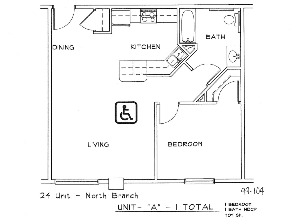Modelo de apartamento: 1-1-709 Handicap$1,0451 Dormitorio, 1 Baño, 709 sq ftNo DisponiblePlanosFotos![]()