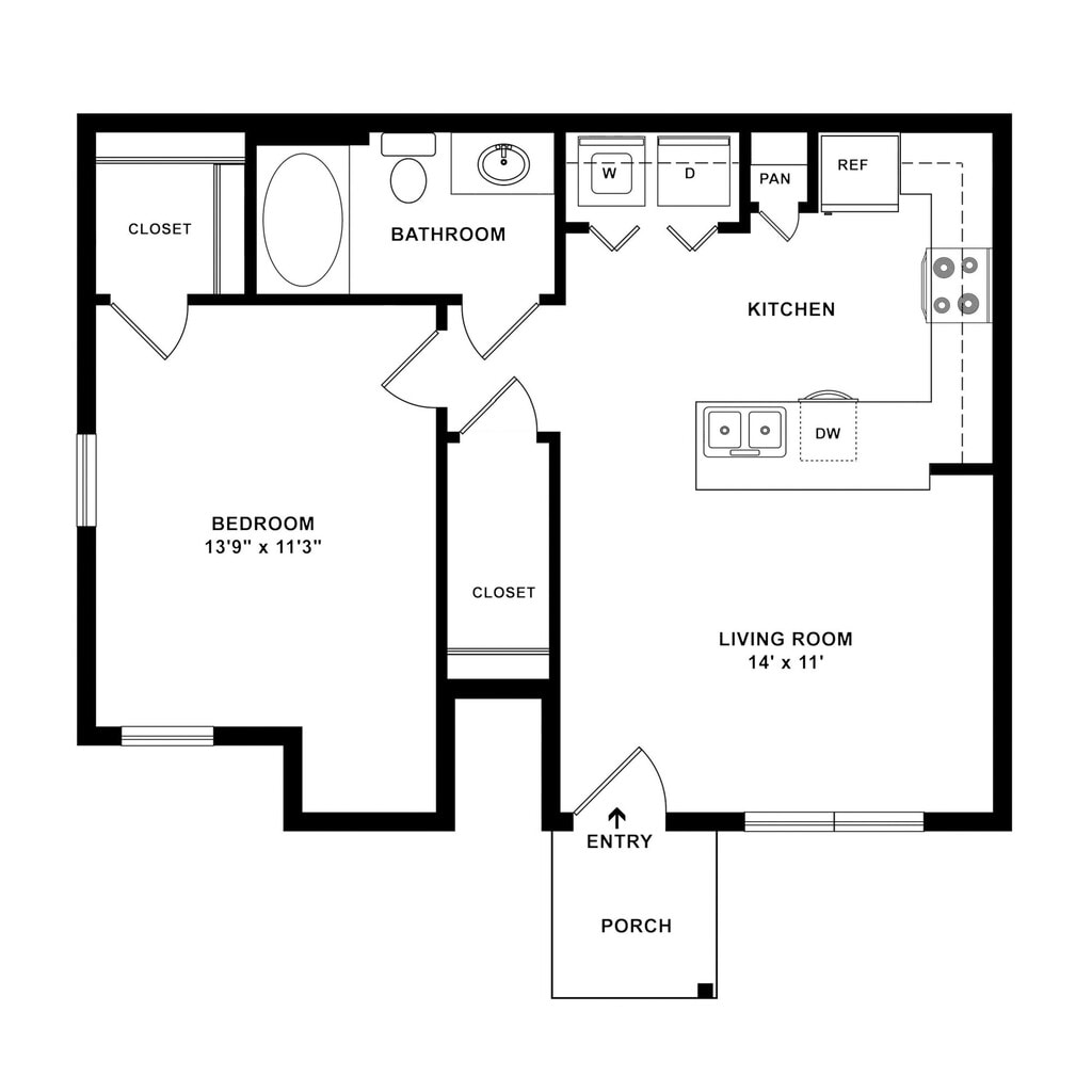 1 Dormitorio, 1 Baño, 900 pies²Disponible AhoraGalería del Modelo