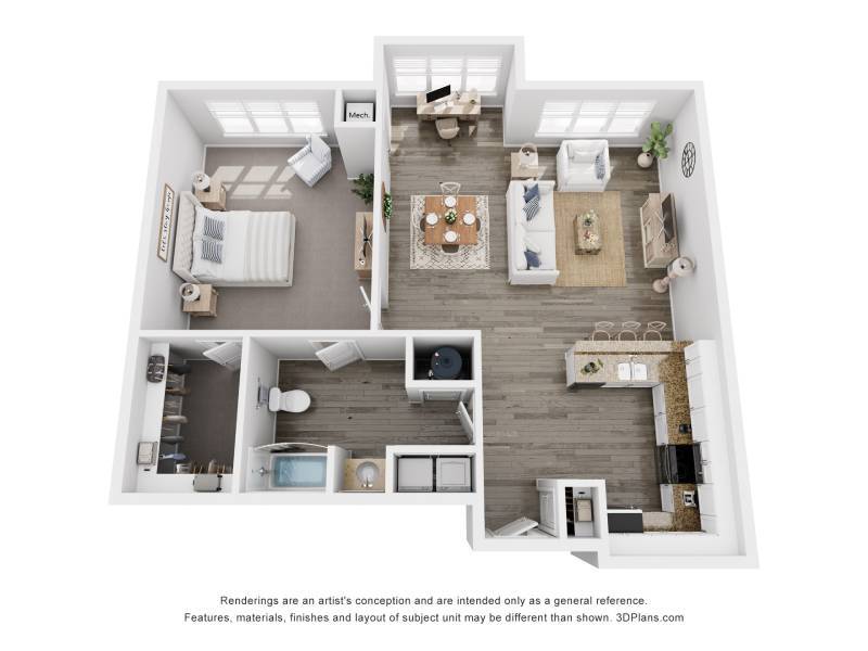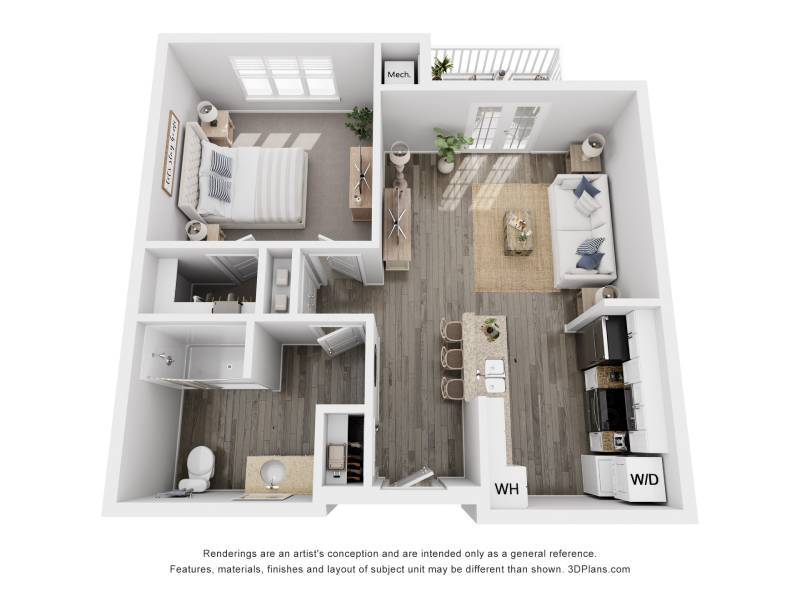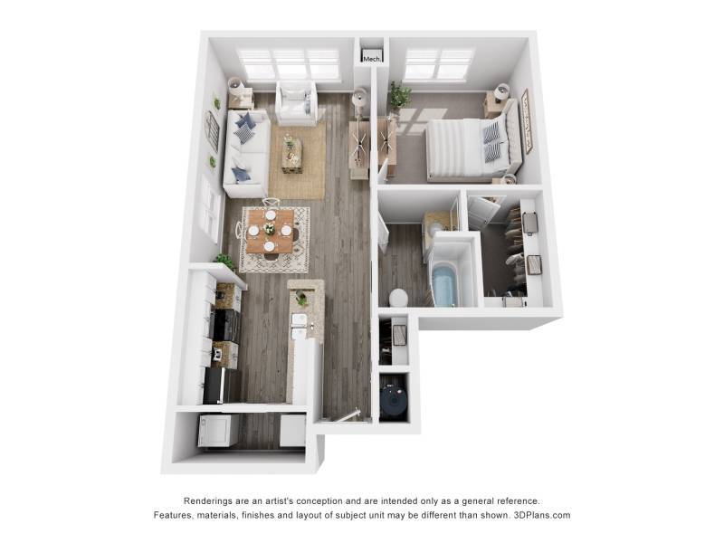 1 Dormitorio, 1 Baño, 750 pies²Disponible AhoraGalería del Modelo