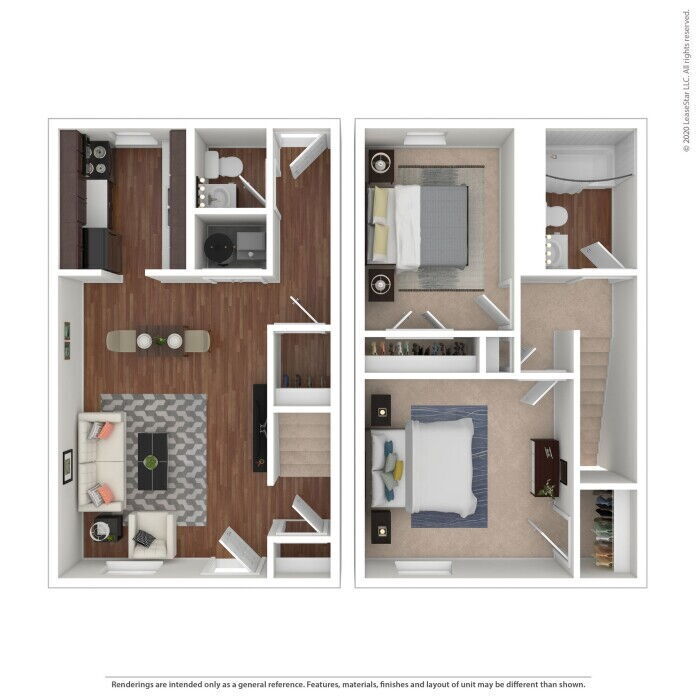 2 Dormitorios, 1.5 Baños, 865 pies²Disponible AhoraGalería del Modelo