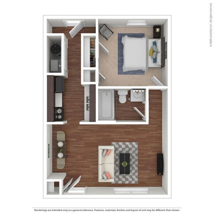 1 Dormitorio, 1 Baño, 590 pies²Disponible AhoraGalería del Modelo