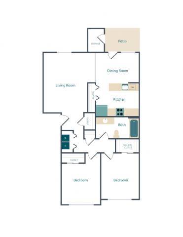 2 Dormitorios, 1 Baño, 890 pies²Galería del Modelo