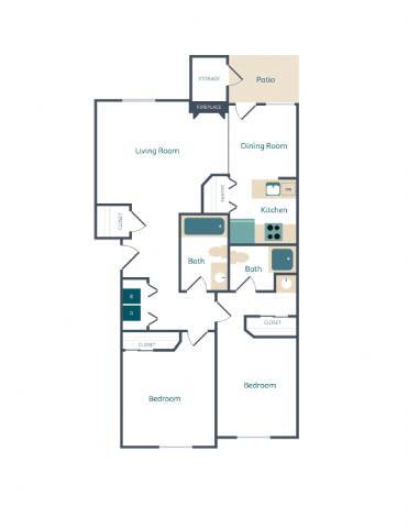 Modelo de apartamento: 3 Bedrooms, 2 Bathrooms$2,2953 Dormitorios, 2 Baños, 1120 sq ftNo Disponible![]()