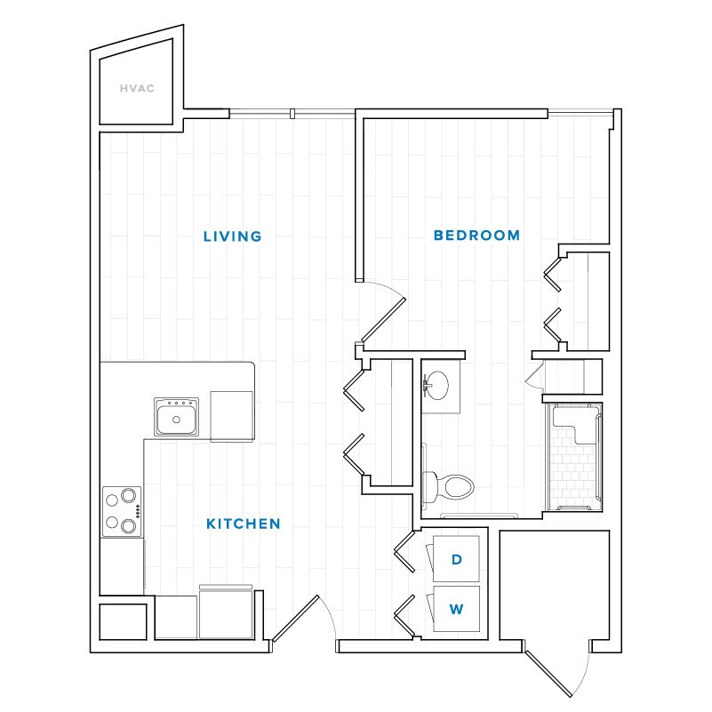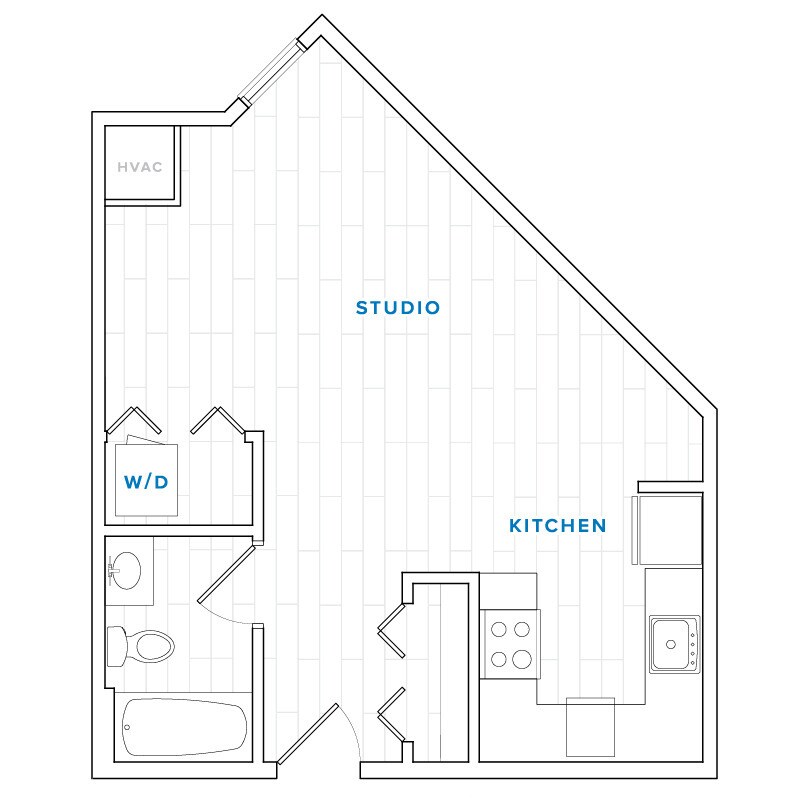 Modelo de apartamento: Aurora$2,550Estudio, 1 Baño, 453 sq ftDisponible August 15, 2026Aurora - Plano 1 1 Dormitorio