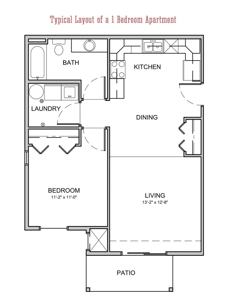 1 Dormitorio, 1 Baño, 810 pies²Galería del Modelo