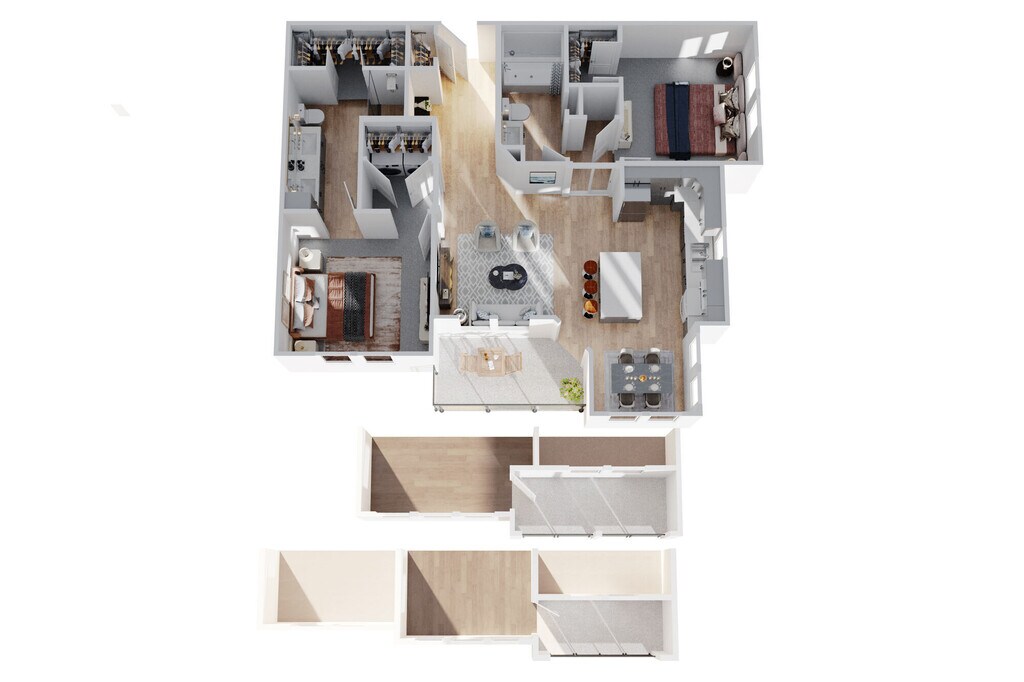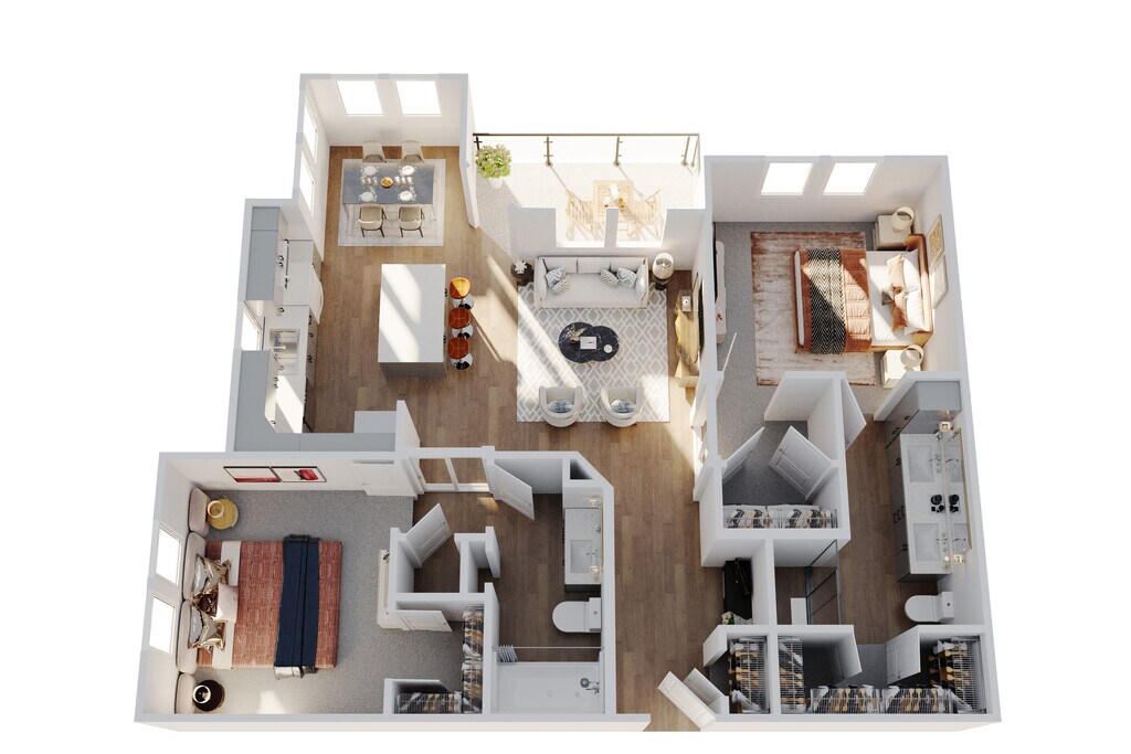 Nuestras residencias de apartamentos ofrecen a los residentes un santuario sereno para llamar hogar. Con un diseño exquisito y amplio plano de planta, es el entorno perfecto para relajarte y disfrutar de tus noches en la comodidad absoluta. Cuidadosamente diseñados, estos apartamentos incorporan tecnología SMART para el hogar, electrodomésticos de primer nivel, placas para salpicaduras de azulejos contemporáneos y alrededores de la bañera, todo complementado con elegantes encimeras de granito pulido y habitaciones lujosamente alfombradas.