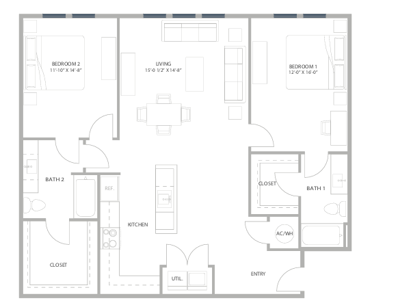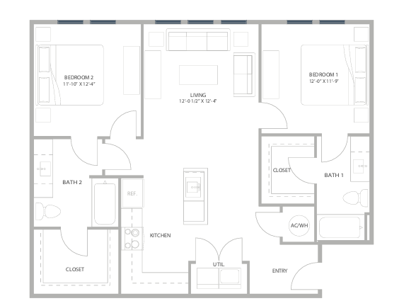 Modelo de apartamento: B2Desde $1,6902 Dormitorios, 2 Baños, 1013 sq ftDisponible June 8, 2026PlanosFotos![]()