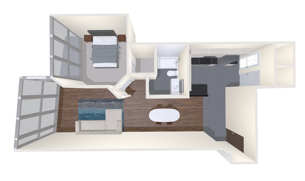 Modelo de apartamento: OsceolaDesde $1,600Estudio, 1 Baño, 559 sq ftDisponible AhoraLos planos son representaciones artísticas. Todas las dimensiones son aproximadas. El producto y las especificaciones reales pueden variar en tamaño o detalle. No todas las características están disponibles en cada vivienda en alquiler. Por favor, consulta con un representante para obtener más detalles.