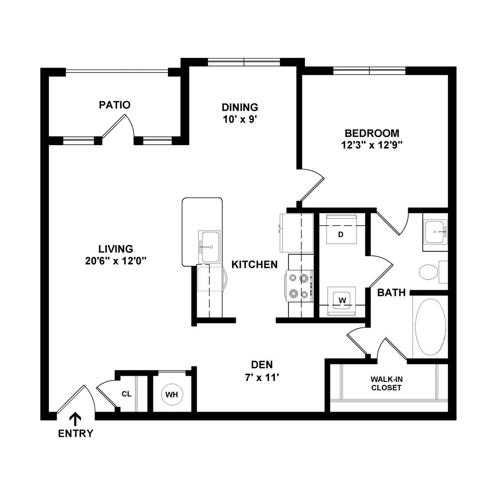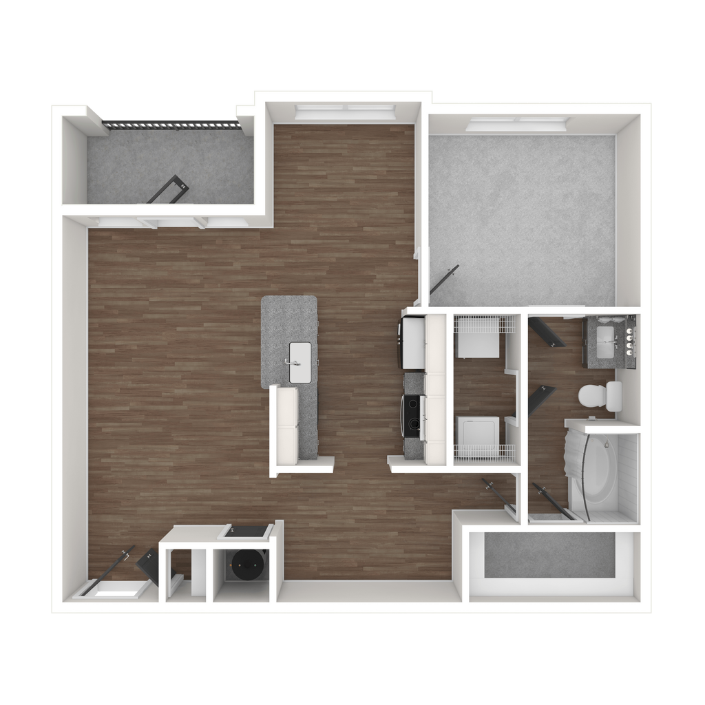 Modelo de apartamento: A1Desde $1,3031 Dormitorio, 1 Baño, 661 sq ftDisponible Ahora![]()