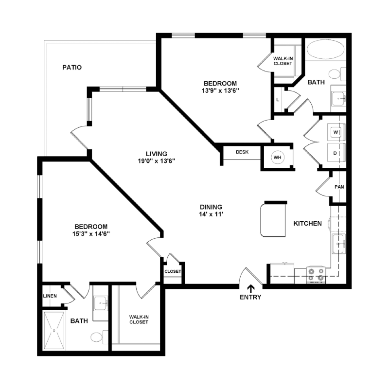 A3 - Plano 3 Unidad de apartamento: 2123Modelo de apartamento: A3$1,6701 Dormitorio, 1 Baño, 984 sq ftDisponible January 22, 20262 Dormitorios