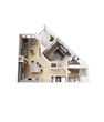 Modelo de apartamento: S11 Dormitorio, 1 Baño, 519 sq ftDisponible May 15, 2026![]()