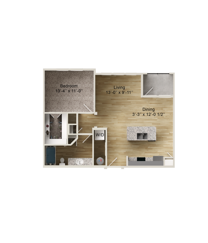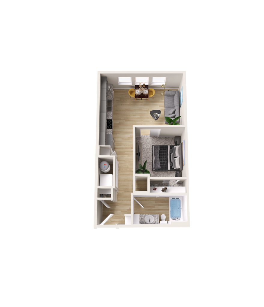 Modelo de apartamento: A31 Dormitorio, 1 Baño, 649 sq ftDisponible May 15, 2026![]()