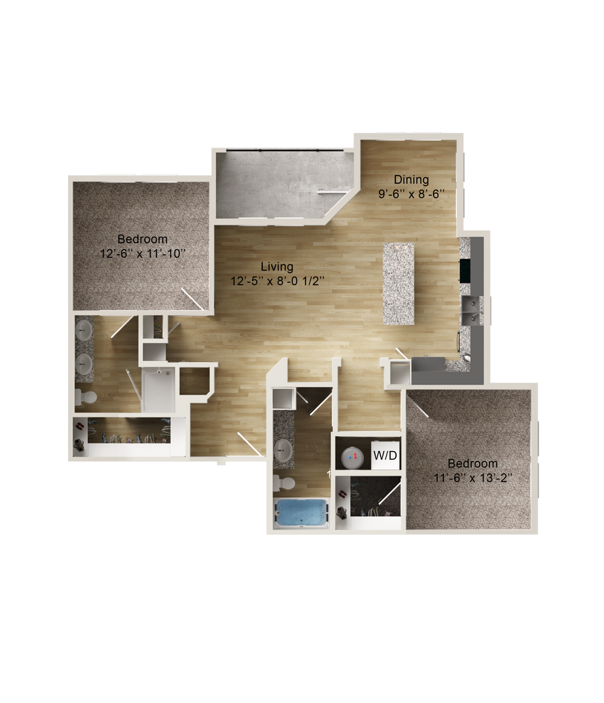 Modelo de apartamento: B52 Dormitorios, 2 Baños, 1115 sq ftDisponible April 15, 2026![]()