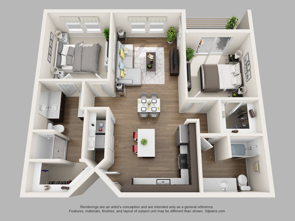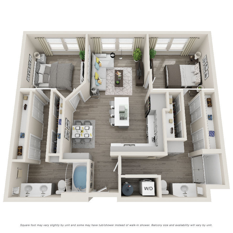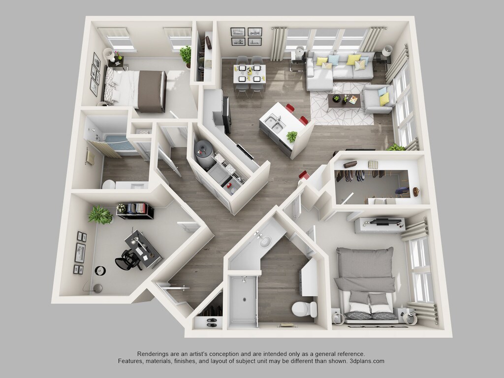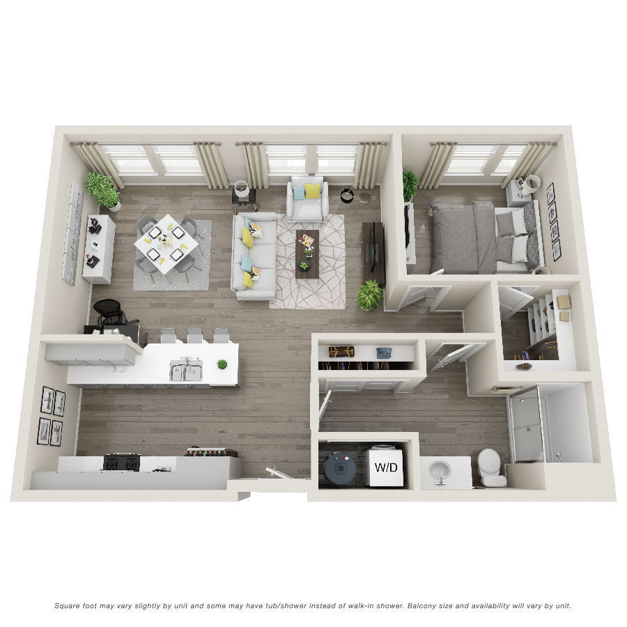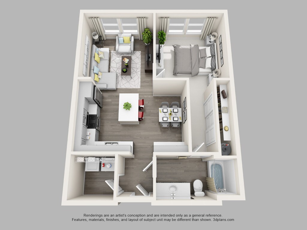 Modelo de apartamento: 1BDesde $1,5871 Dormitorio, 1 Baño, 702 sq ftDisponible Ahora![]()