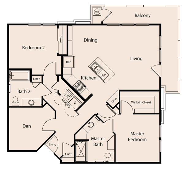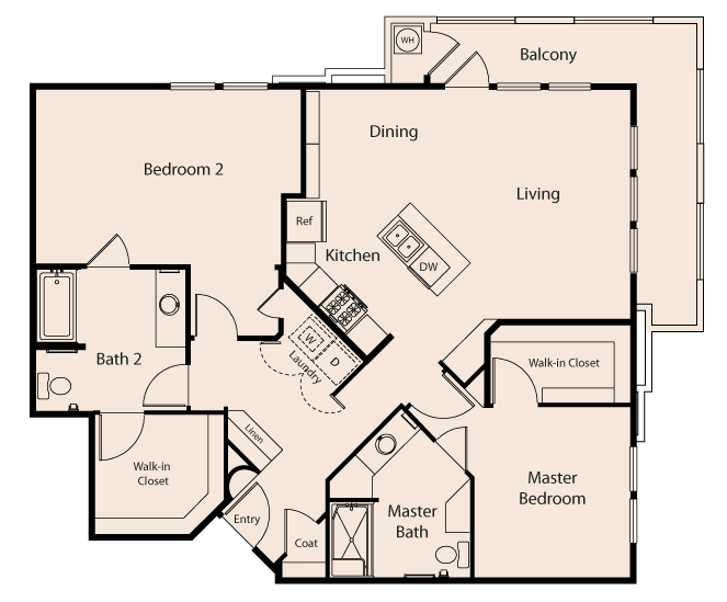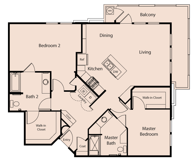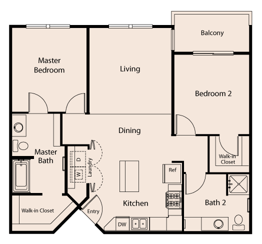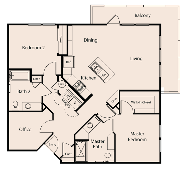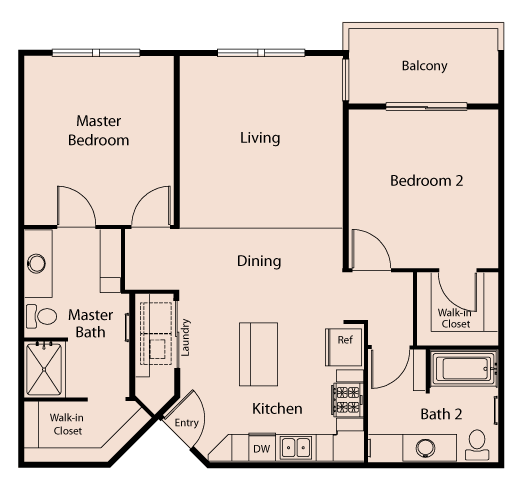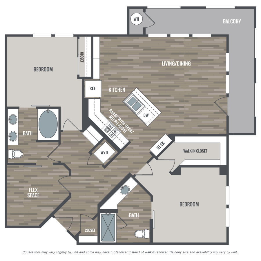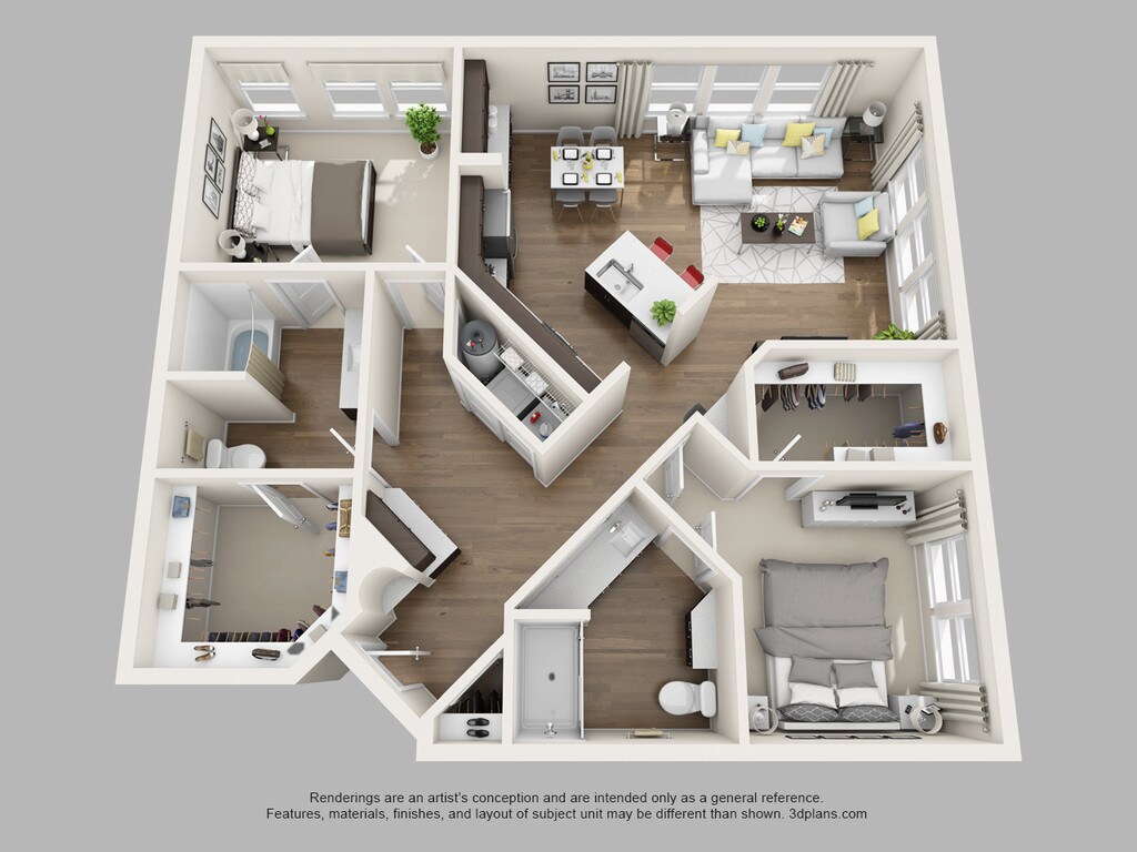 Modelo de apartamento: 1BDesde $1,5871 Dormitorio, 1 Baño, 702 sq ftDisponible Ahora![]()