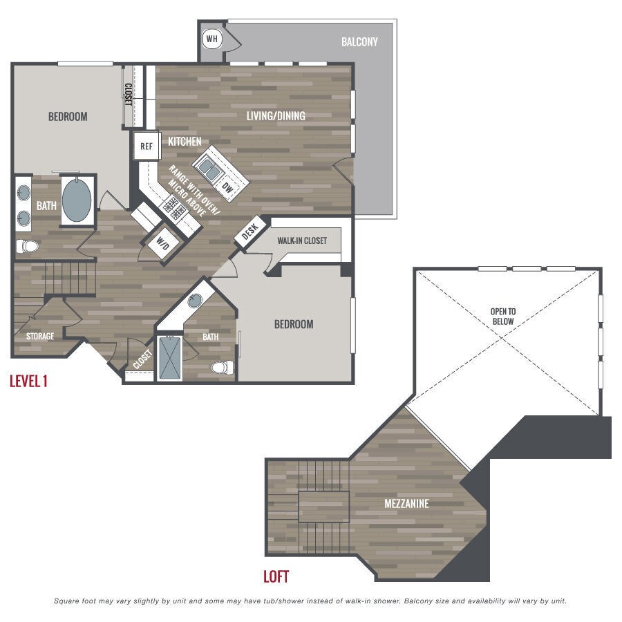 1C - Plano 2 Unidad de apartamento: 2210Modelo de apartamento: 1C$1,8871 Dormitorio, 1 Baño, 628 sq ftDisponible Ahora1B20