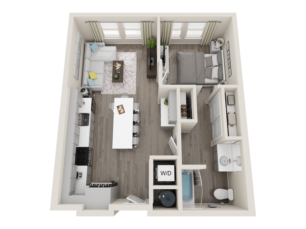 Modelo de apartamento: SADesde $1,839Estudio, 1 Baño, 578 sq ftDisponible Ahora![]()