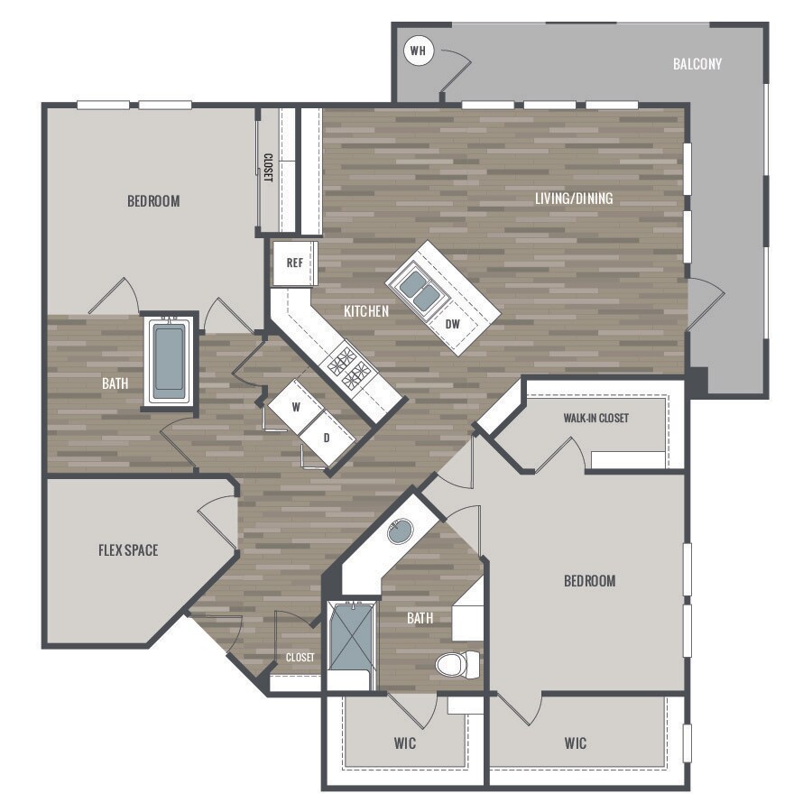 Modelo de apartamento: 1CDesde $1,6351 Dormitorio, 1 Baño, 663 sq ftDisponible AhoraLos planos son representaciones artísticas. Todas las dimensiones son aproximadas. El producto y las especificaciones reales pueden variar en tamaño o detalle. No todas las características están disponibles en cada vivienda en alquiler. Por favor, consulta con un representante para obtener más detalles.