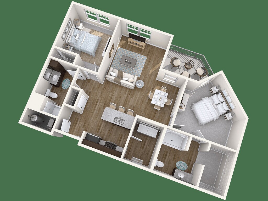Modelo de apartamento: Jefferson2 Dormitorios, 2 Baños, 1154 sq ftNo Disponible![]()