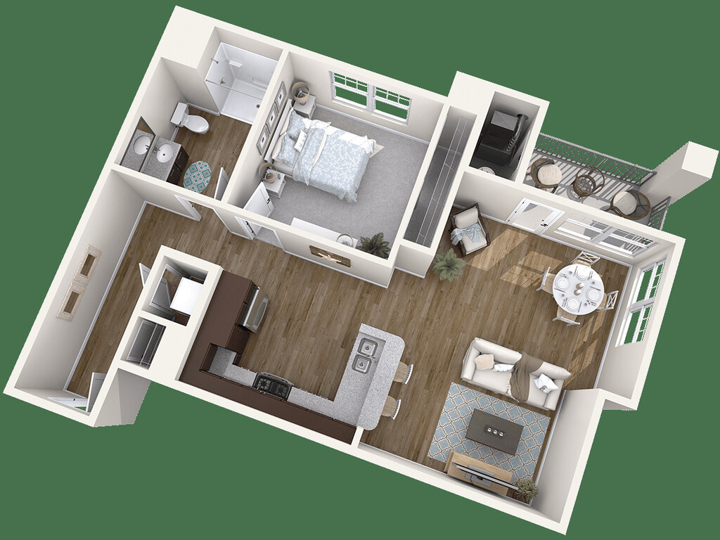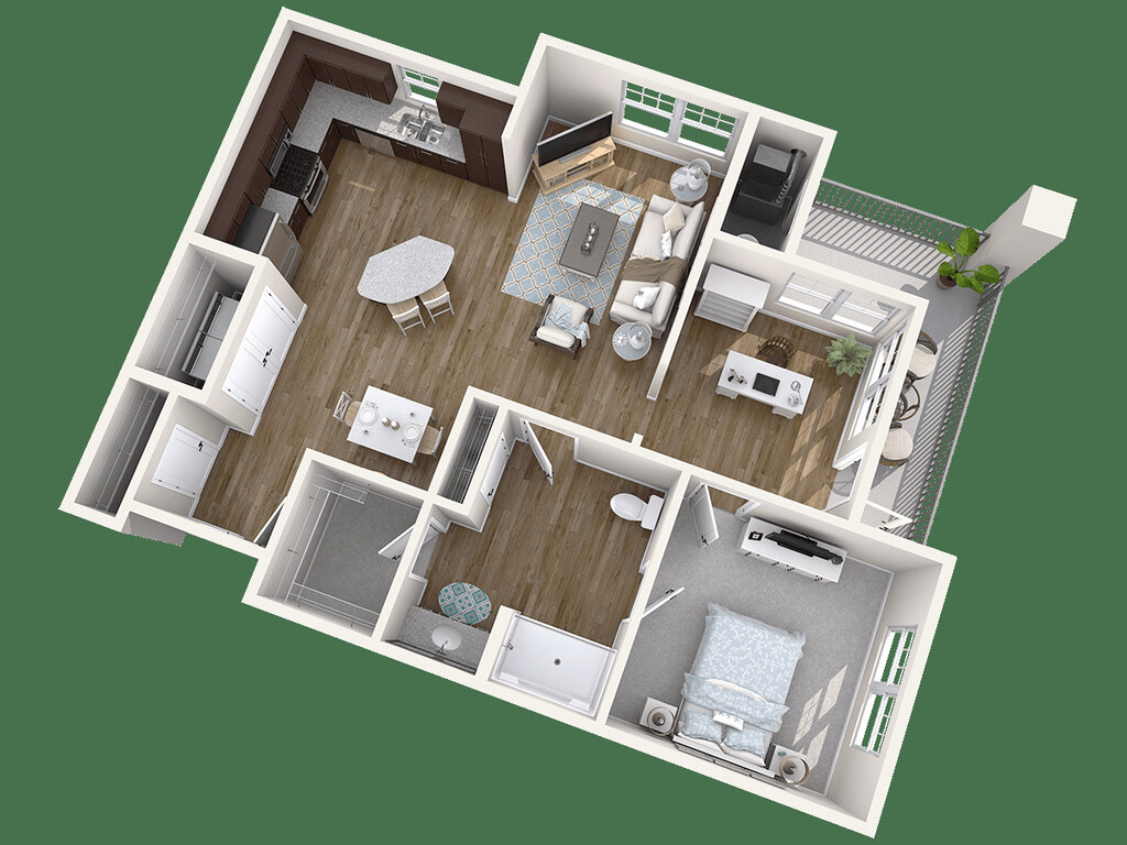 1 Dormitorio, 1 Baño, 970 pies²El más grandeEsta opción tiene las unidades más grandes para este modeloGalería del Modelo