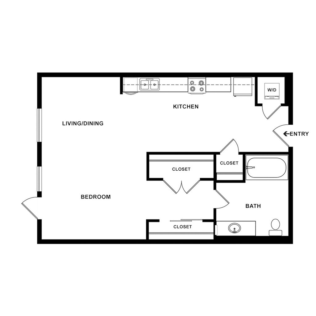Estudio, 1 Baño, 603 pies²Disponible Oct 8Galería del Modelo