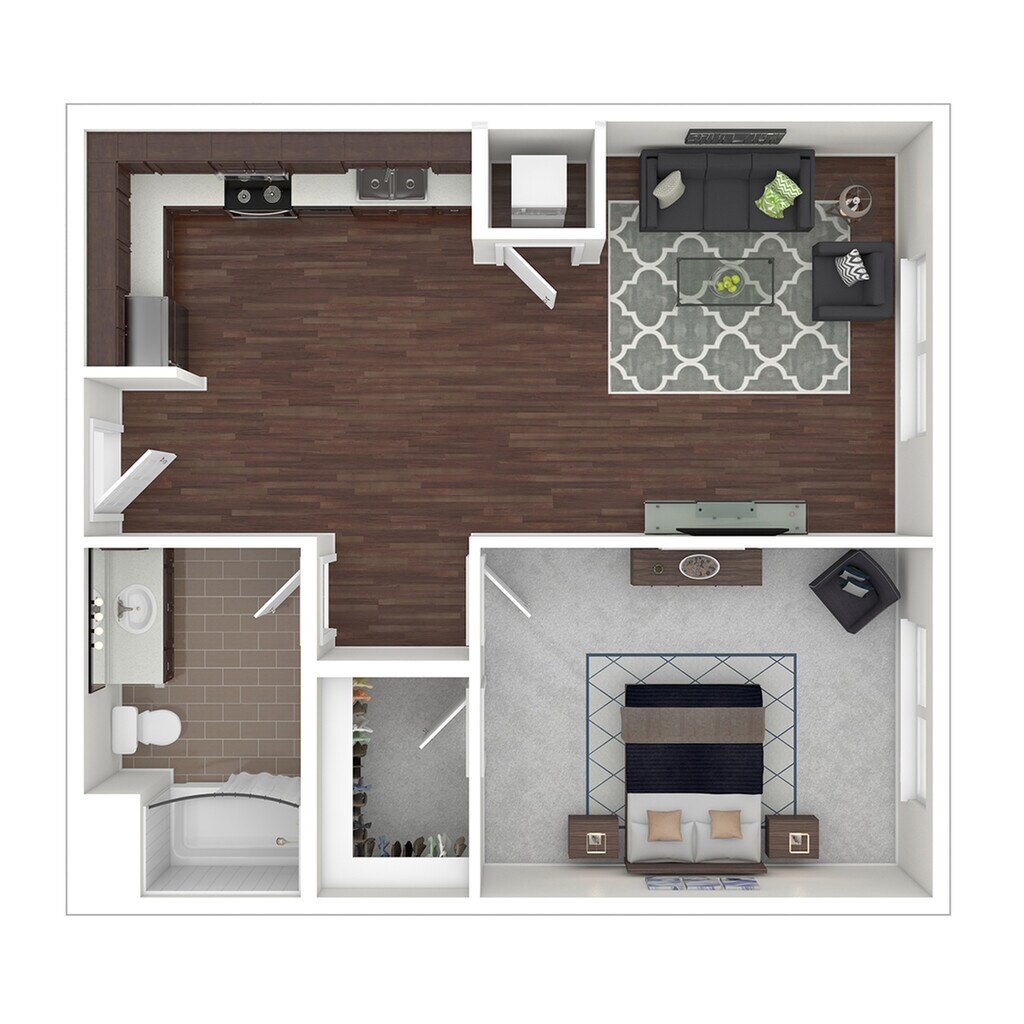 1 Dormitorio, 1 Baño, 760-796 pies²Disponible AhoraEl más grandeEsta opción tiene las unidades más grandes para este modeloGalería del Modelo