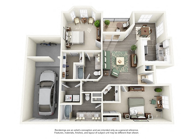 Modelo de apartamento: Aspen A2Desde $1,4971 Dormitorio, 1 Baño, 769 sq ftDisponible Ahora![]()