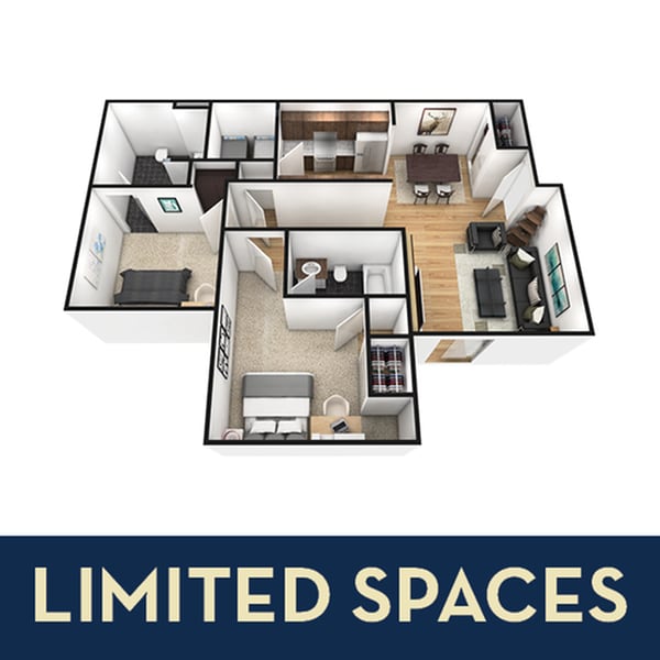 2x2 - Imagen 1 Los planos son representaciones artísticas. Todas las dimensiones son aproximadas. El producto y las especificaciones reales pueden variar en tamaño o detalle. No todas las características están disponibles en cada vivienda en alquiler. Por favor, consulta con un representante para obtener más detalles.