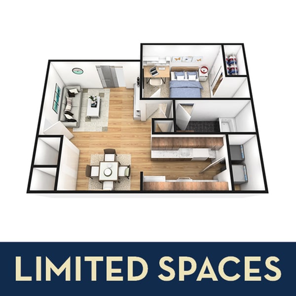 1 Dormitorio, 1 Baño, 625 pies²Disponible Aug 15Galería del Modelo