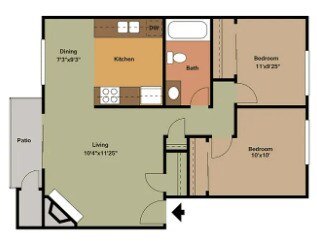 2 Dormitorios, 1 Baño, 840 pies²Disponible AhoraGalería del Modelo