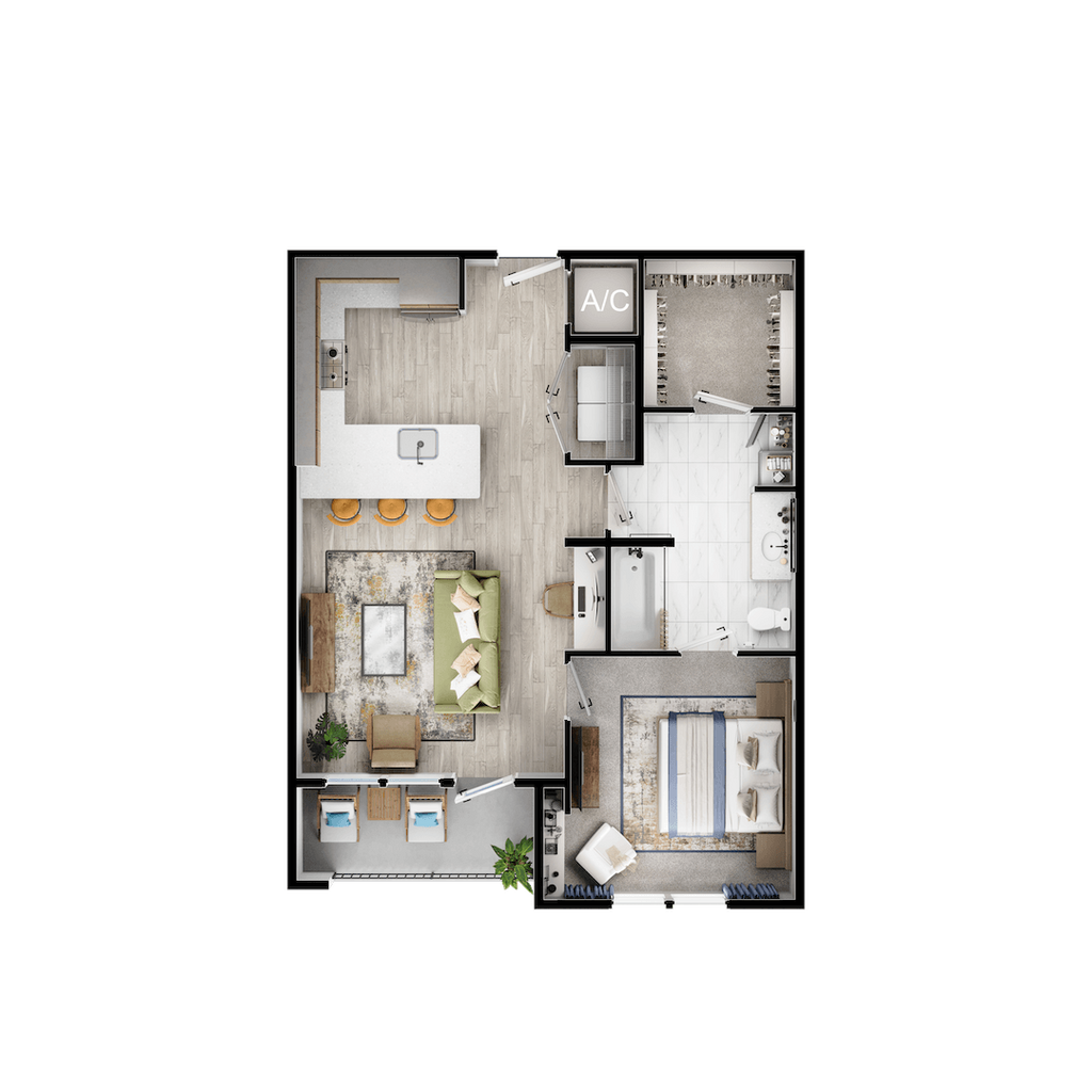 1 Dormitorio, 1 Baño, 748 pies²Precio Mensual TotalDisponible Mar 10Galería del Modelo