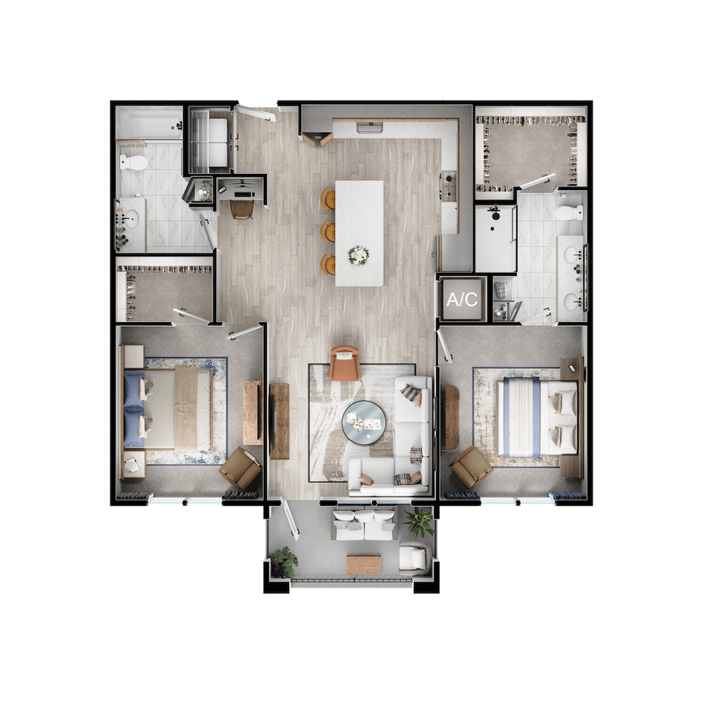 2 Dormitorios, 2 Baños, 1150 pies²Precio Mensual TotalDisponible Mar 10Galería del Modelo