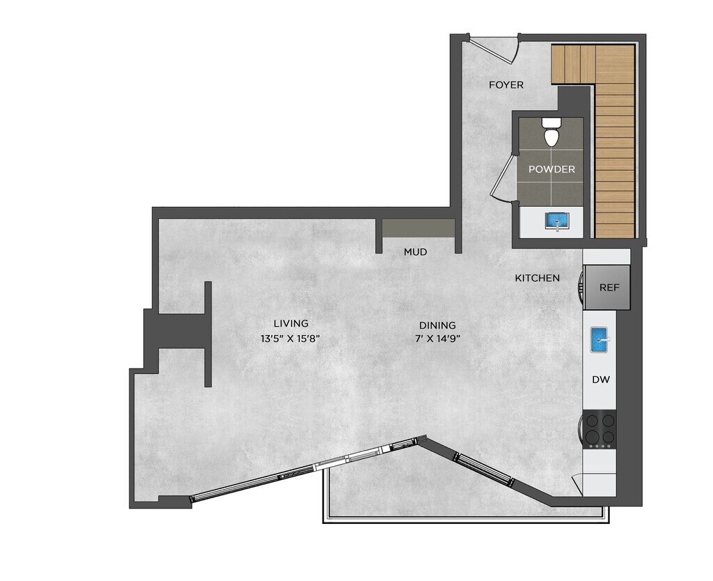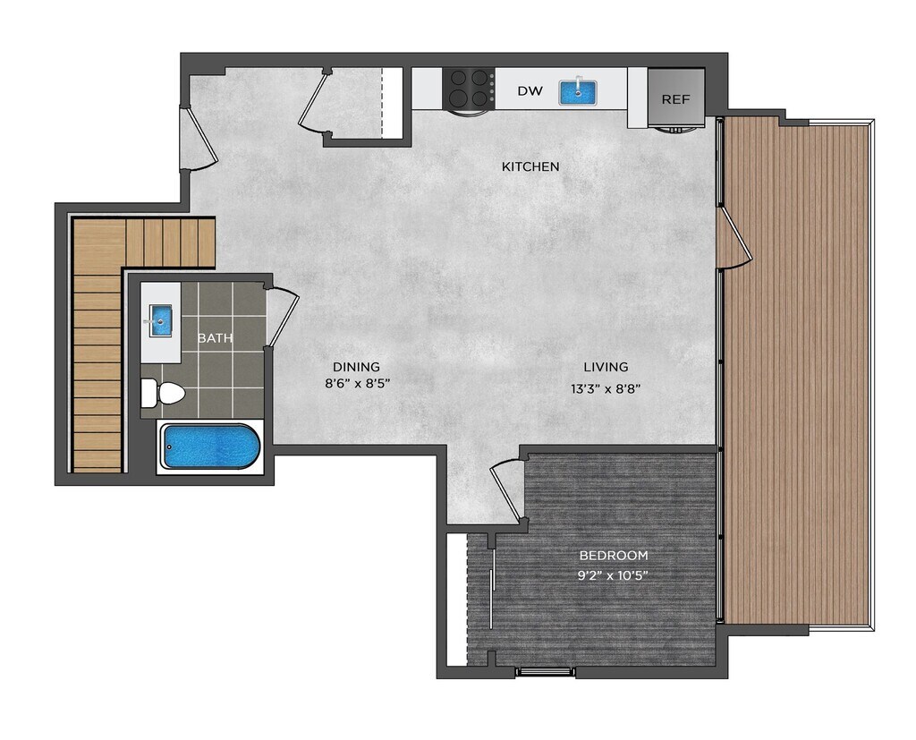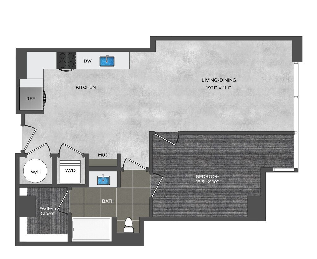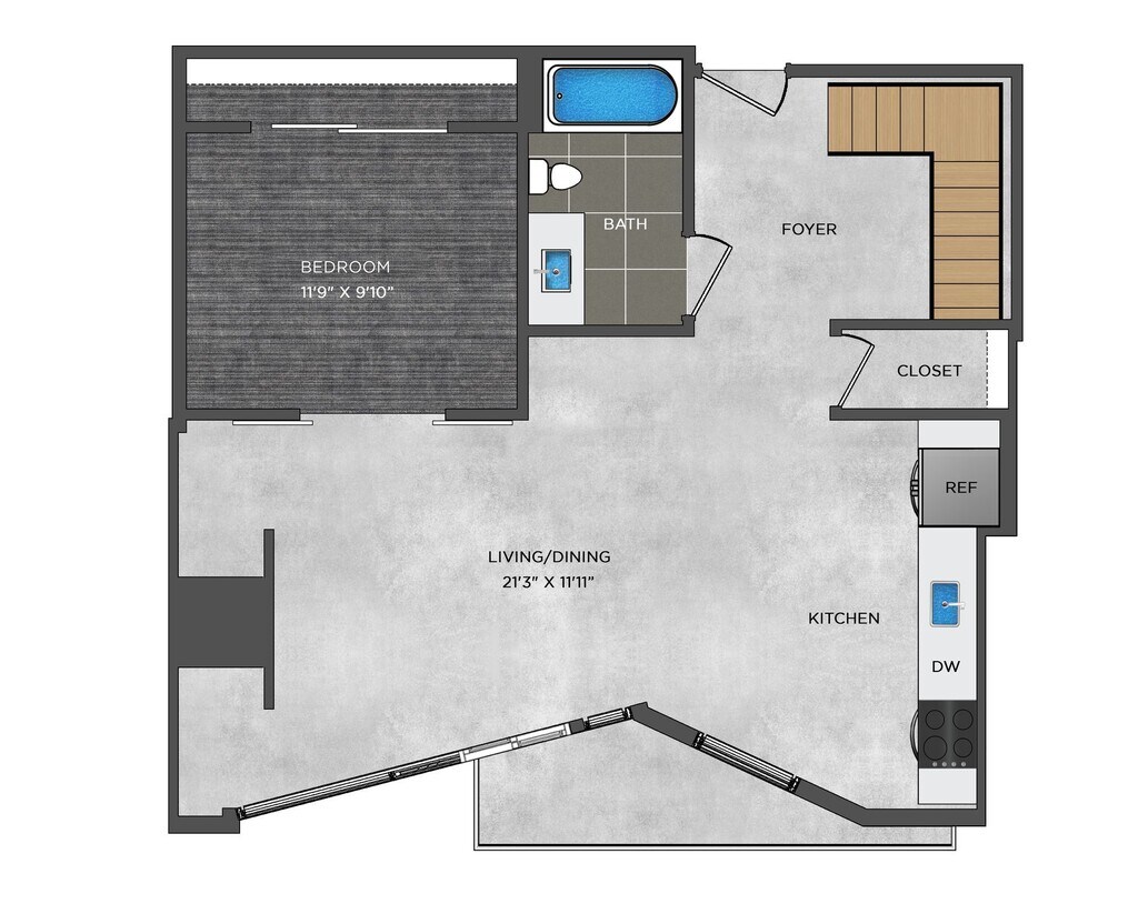 1 Dormitorio, 1 Baño, 941 pies²Disponible AhoraGalería del Modelo